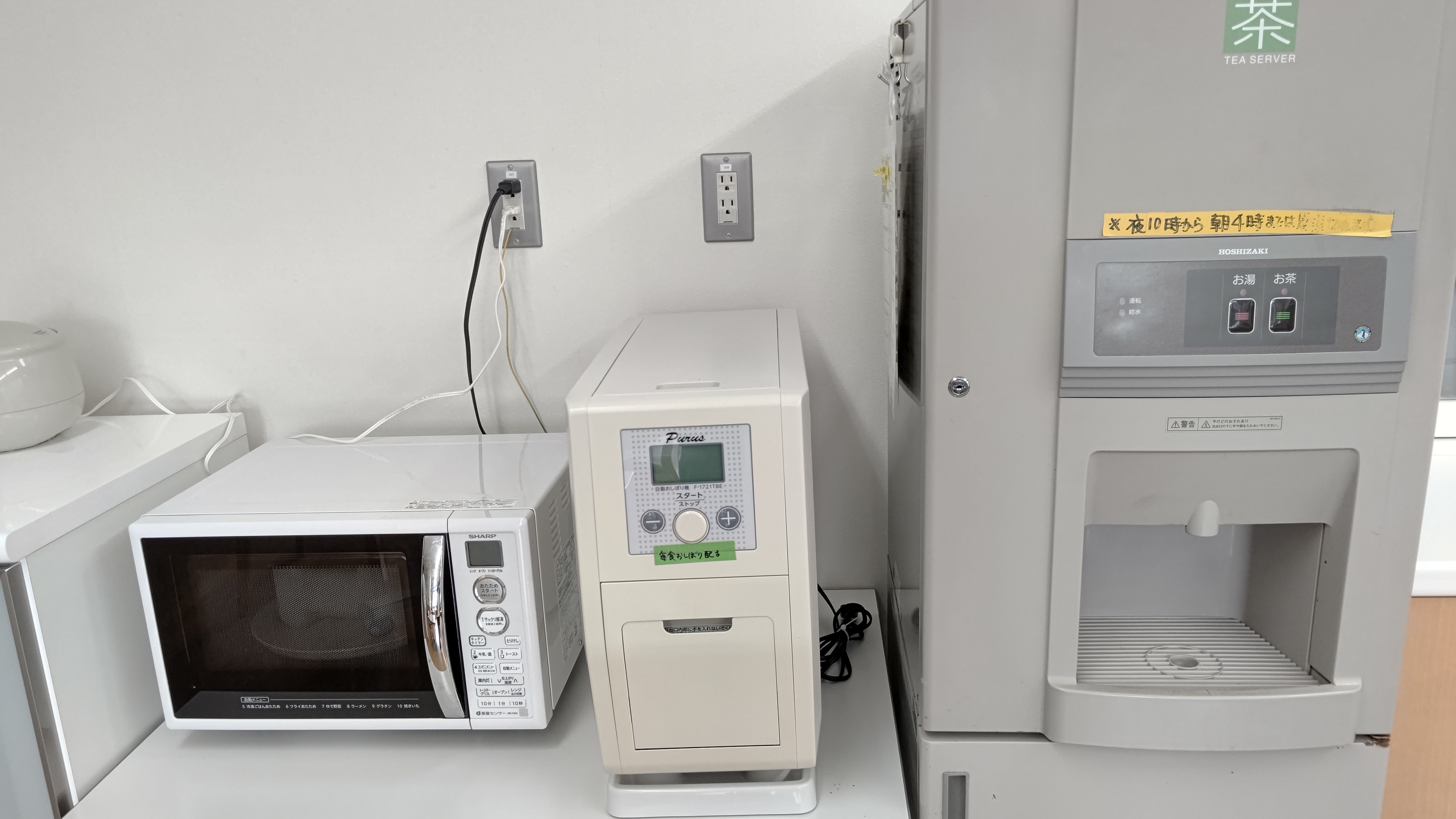 お茶と熱湯が出ますので、ご利用の場合は お近くのスタッフにお声掛け下さい。