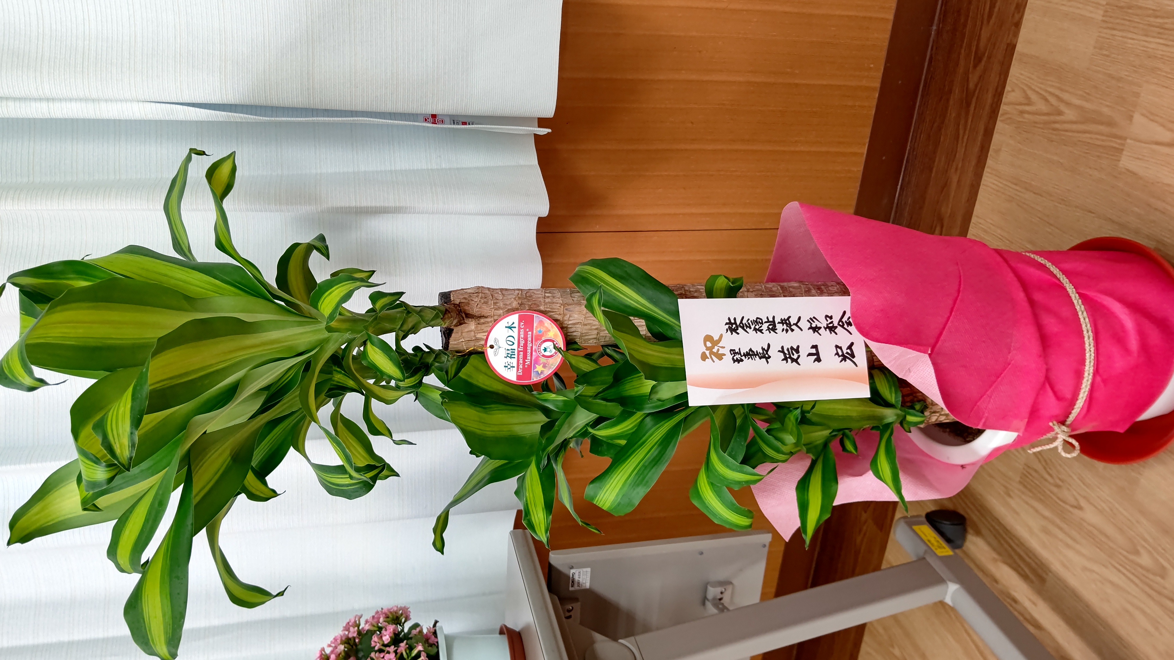 こんにちは 看多機看護師の松田です。 社会福祉法人杉和会 若山宏様よりお祝いの品をいただきました。 とても立派な幸福の木 ありがとうございました。 大事に育てたいと思います。 ![]() |