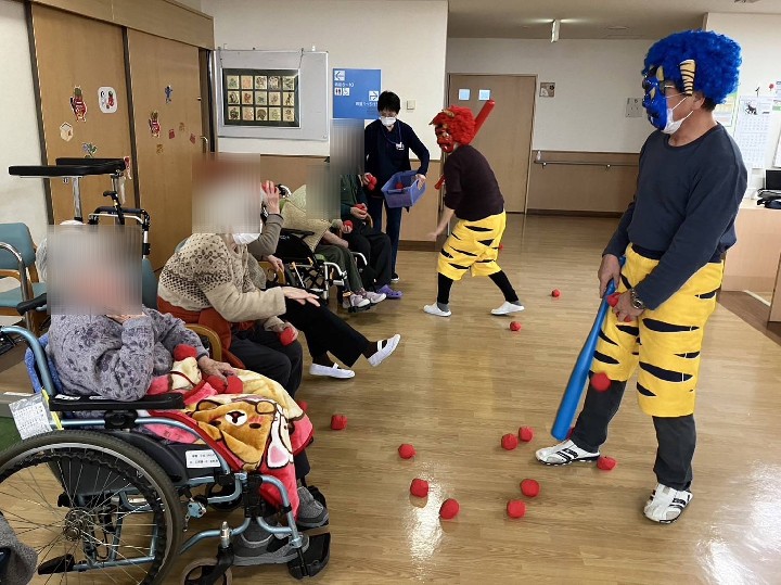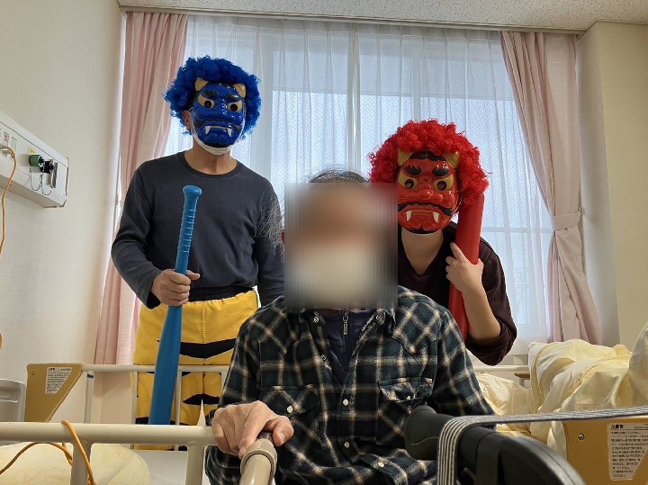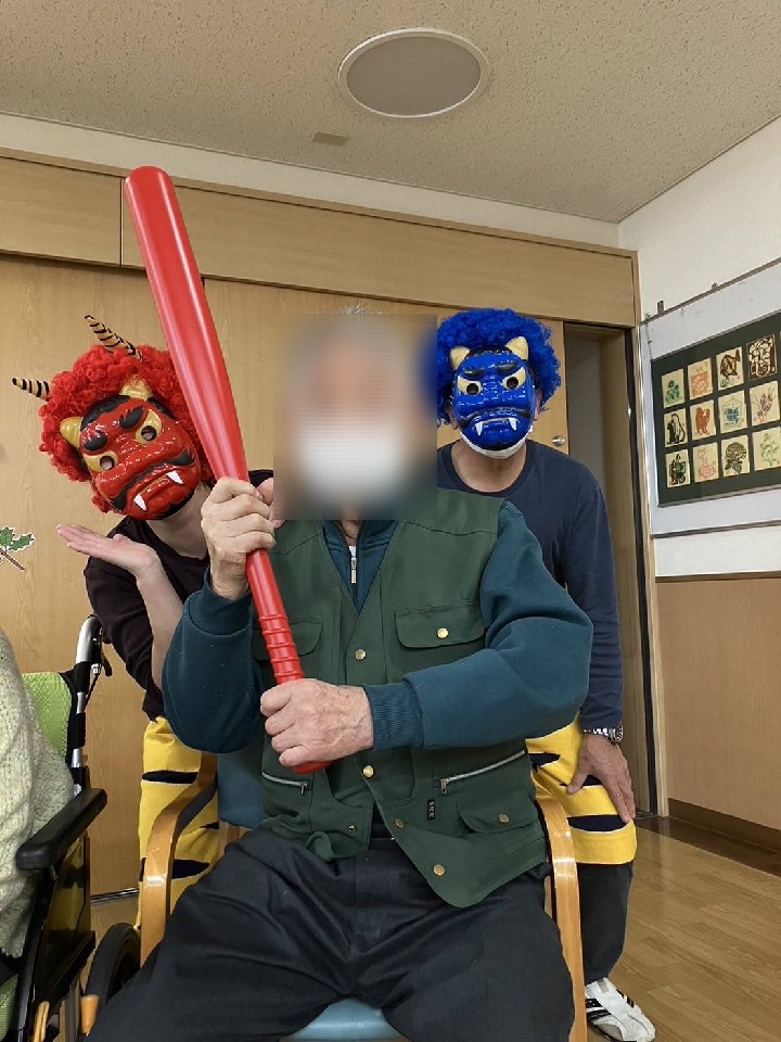 節分祭を行いました。 ゲームをしたり、皆で歌を歌ったり 楽しいひと時を過ごしました。 ボールを投げ、鬼退治。 始めはなかなか飛ばなかったボールも、皆さん、コツを掴んで投げるのが上手に! それッ、えいッ… お見事!! 鬼が逃げていきましたヽ(^。^)ノ ![]() ![]() 最後は、鬼さんと仲良く記念写真☆ 利用者様の笑顔を、一部ですが紹介します(*'ω'*) ![]() 面会に来られた旦那様と一緒に。仲睦まじいいご夫婦です♡ ![]() 金棒(赤色ですがww)を持つ姿、勇ましいです。 ![]() 恥ずかしそうにして見えましたが、写真撮らせてもらえました。 ありがとうございます。 |