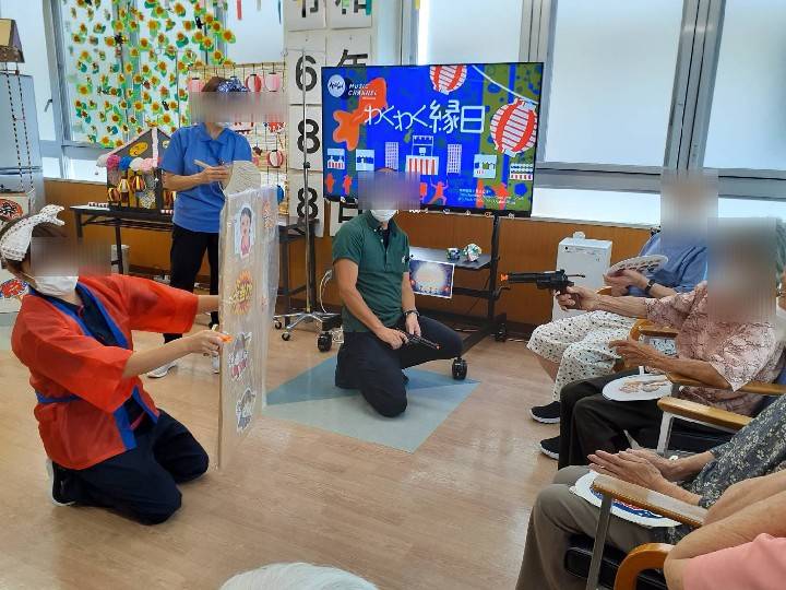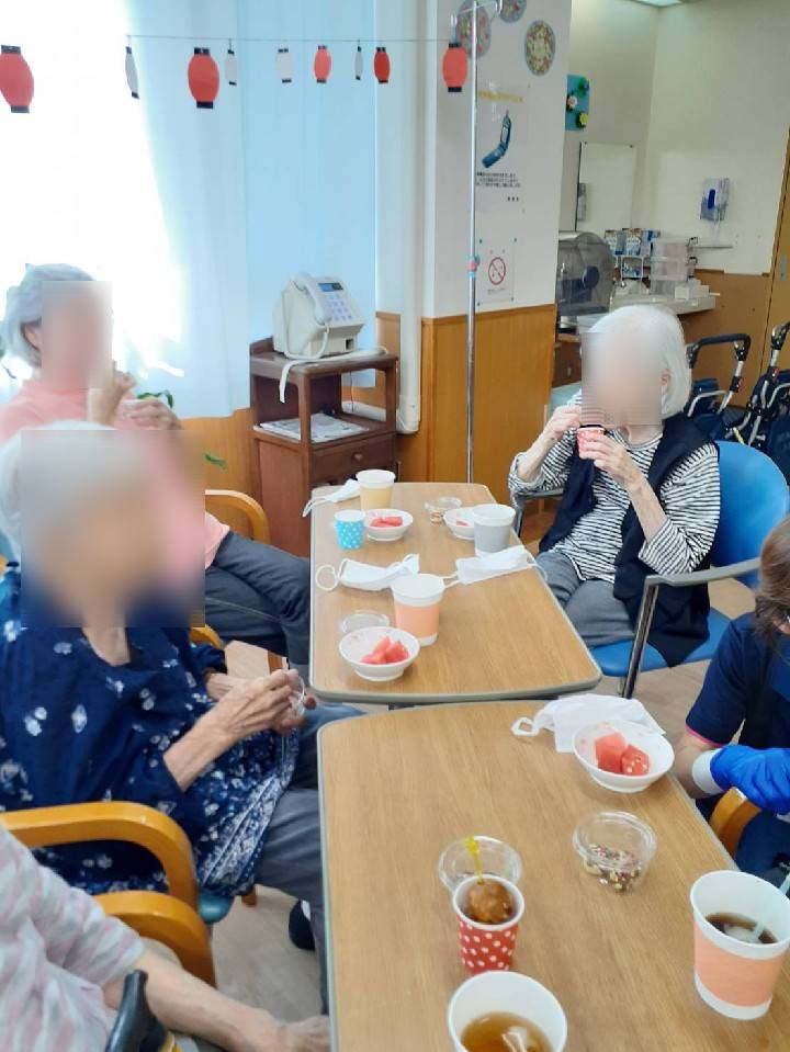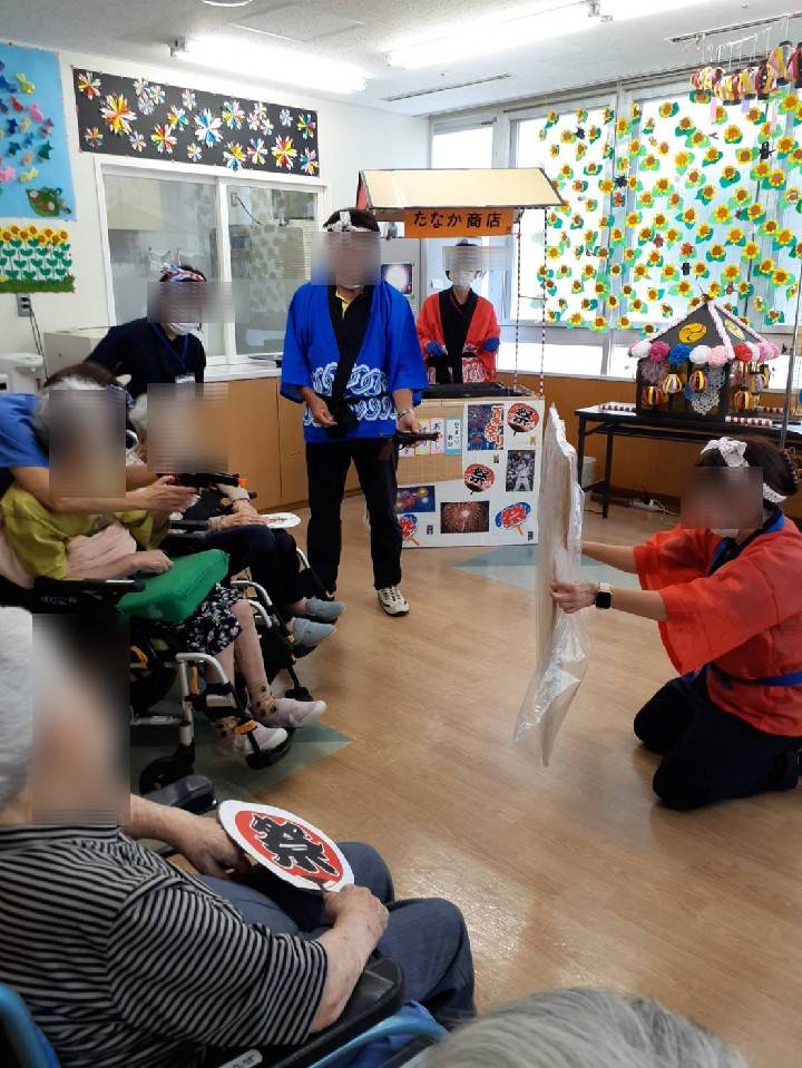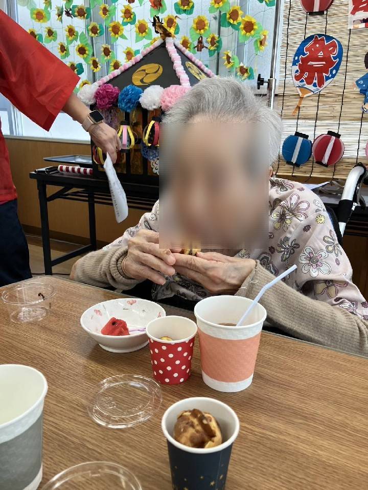 看多機恒例、夏祭りを行いました。 お祭り男のお神輿で賑やかに始まりました。 ![]() 今年の射的の景品は、チョコバナナ、ベビーカステラと交換して頂けるスペシャルチケット。 いつも受け身になりがちな利用者様ですが、直接、お店に行き、商品を交換して頂きました。 子供の頃を思い出す、素敵な時間になりました。 ![]() ![]() このチョコバナナ、ベビーカステラは、スタッフで何度も試作を重ねた自信作(*´ω`*) 看多機スタッフが家庭菜園で作ったスイカ、選べるドリンクもあって食べ物盛りだくさん。 利用者様は、コーヒー好きが多い…と、小さな発見もありました♡ ![]() ![]() 夏祭りの終盤、利用者様の一人が、 「実行委員の方、今日は、私たちのためにありがとうございました。」とお礼のスピーチを して下さいました。 思わぬサプライズに、スタッフ一同、胸が熱くなりました。 ![]() ![]() 笑いあり、感動ありの夏祭り。 楽しい時間をありがとうございました(≧▽≦)