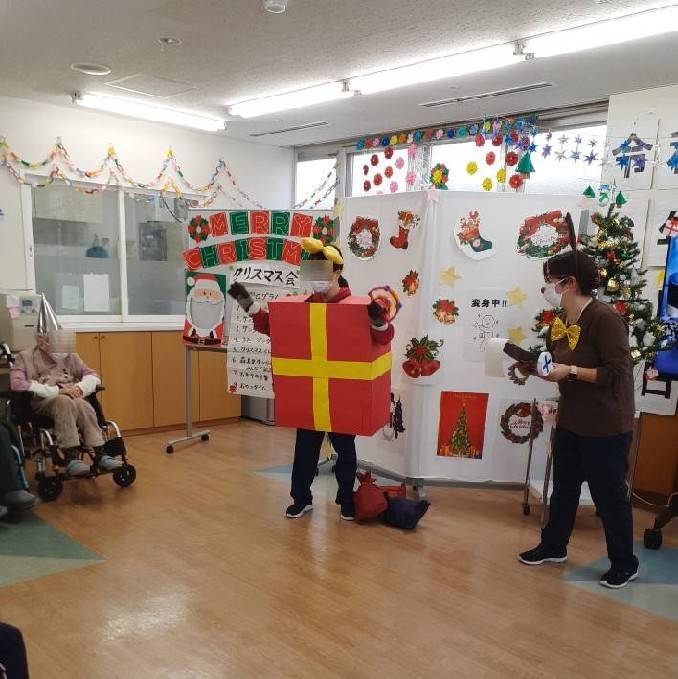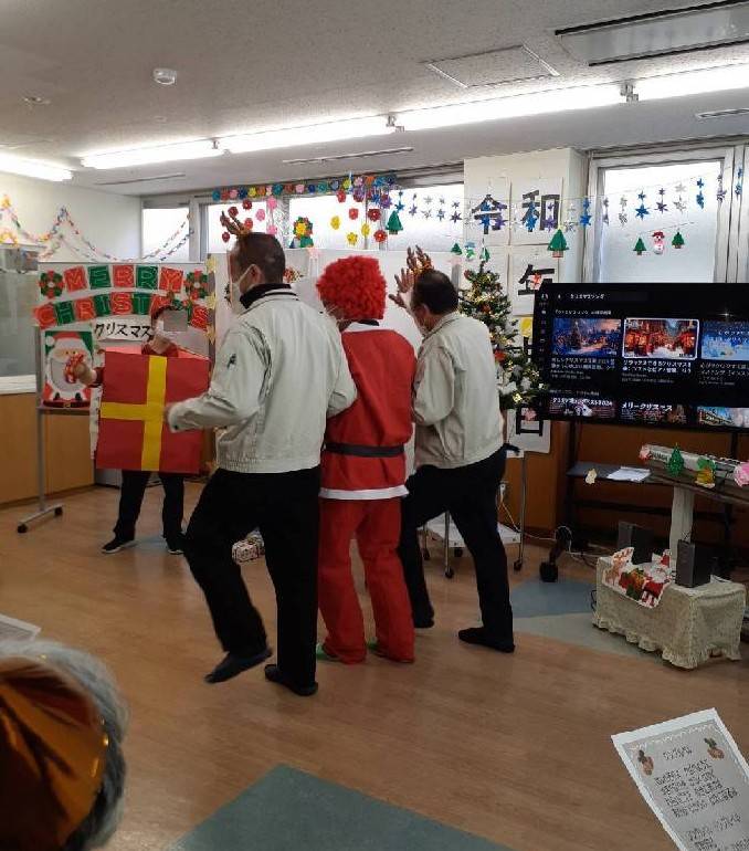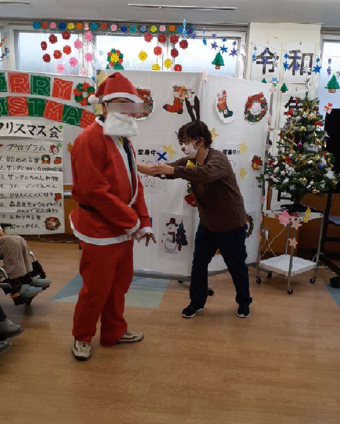 メリークリスマス〜 \(^o^)/ 看多機クリスマス会に、サンタとゆかいな仲間たちが集まりました。 サンタ、雪だるま、プレゼント。それぞれが、パーテーションに隠れて変身をしました。 さて、変身してどこが変わったか分かるかな??クイズを行いました。 ![]() 普通のサンタが、これから変身しまーーす。 変身後の姿は、画像4枚目にありますよ。違いを探してみて下さいね。 ![]() 雪だるまの変身。難易度の高い違いを、脳トレ好きの利用者様が見事に当ててくれました。 ![]() プレゼントが登場すると「可愛い、可愛い♡」の歓声が上がりました(≧▽≦) ![]() ![]() クリスマスの歌を歌いました ![]() スタッフの生演奏です ![]() 歌声に合わせて、サンタとトナカイのダンス ![]() プレゼントをもらった後は、ケーキを頂きました♡ |